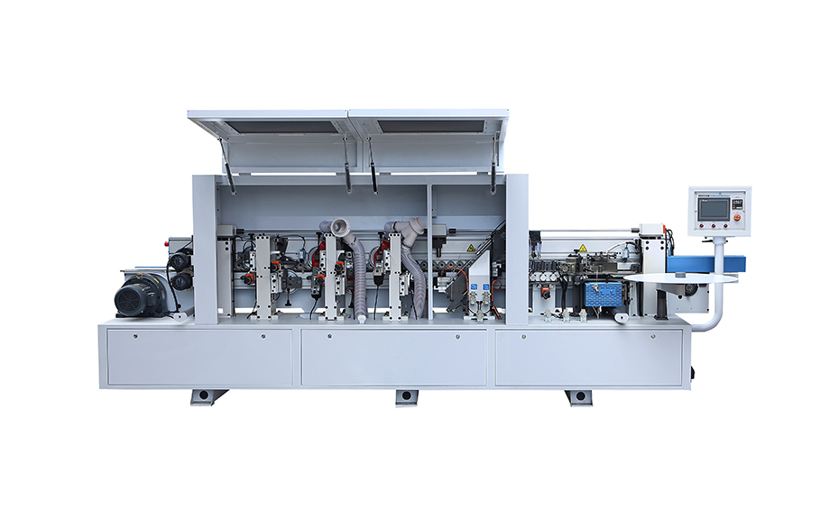 涂膠壓貼機構通過涂膠軸對板材上膠,將板材與封邊帶粘接牢固均勻預銑機構使封邊條與板材貼合更緊密,整體性和美觀度更佳前后齊頭機構將工件首尾封邊帶切斷保證切斷面平整光滑粗修、精修機構修去加工板材封邊條多余的封邊材料,保證修邊板材上下部分的平整光滑;