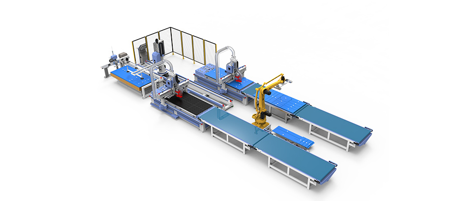 開料工作站中比較好組建的就是一拖二開料工作站,由兩臺數(shù)控開料機,一臺貼標(biāo)機和一臺機械手臂組成,優(yōu)點就是:單批次訂單快速推進,提高交付能力,人機結(jié)合工作,降低勞動強度,大板自動碼垛,避免板材磕碰劃傷,中控系統(tǒng)自動分配,提高設(shè)備利用率,自動化程度高,提高企業(yè)的形象和競爭力。