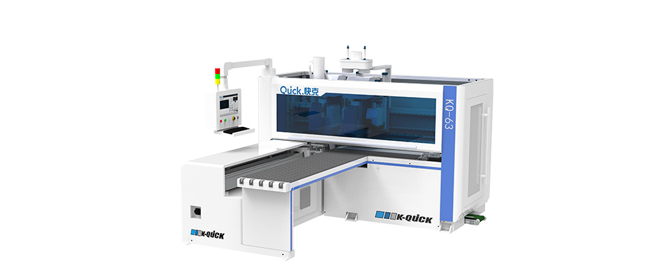 3、采用雙抓手導軌,抓料最大速度可達130m/min,智能檢測孔位信息有效避開開孔位置,減少鉆孔過程中換手時間。抓手行程超過5.3米,大板件可一次抓取加工,衣柜大側板鉆孔加工時間大幅縮短。